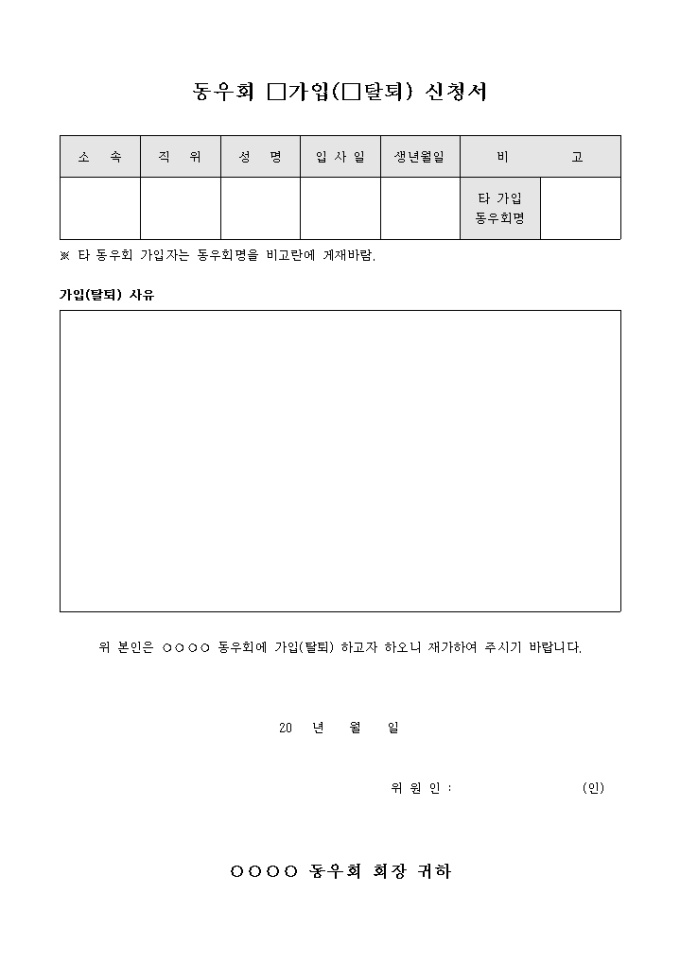 9,000원/월동우회 가입(탈퇴) 신청서 입니다. 동우회에 가입(탈퇴) 사유와