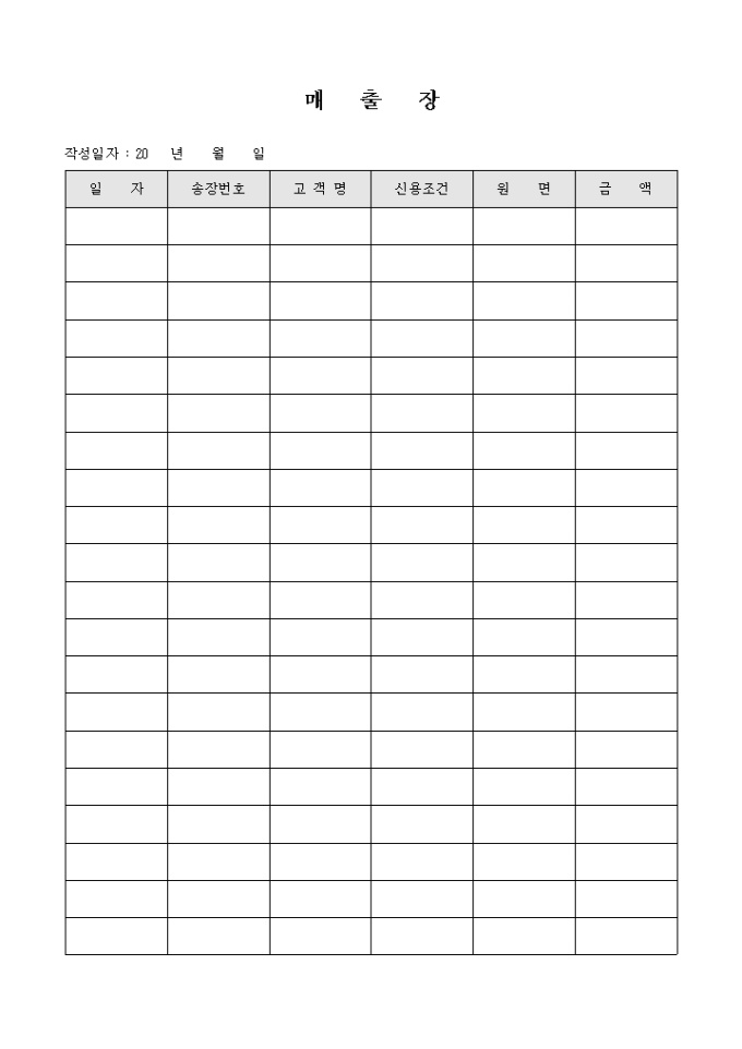9,000원/월공통적으로 사용하는 매출장입니다. 신용조건등의 기록을 기록할때 사용하는 문서입니다.