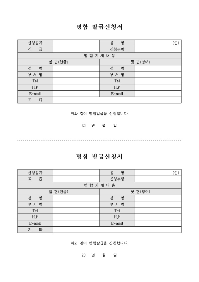 9,000원/월명함 발급시 사용되는 명함발급 신청서 입니다. 명함발급에 필요한 발급내용을 기록하여 신청할때 사용합니다.