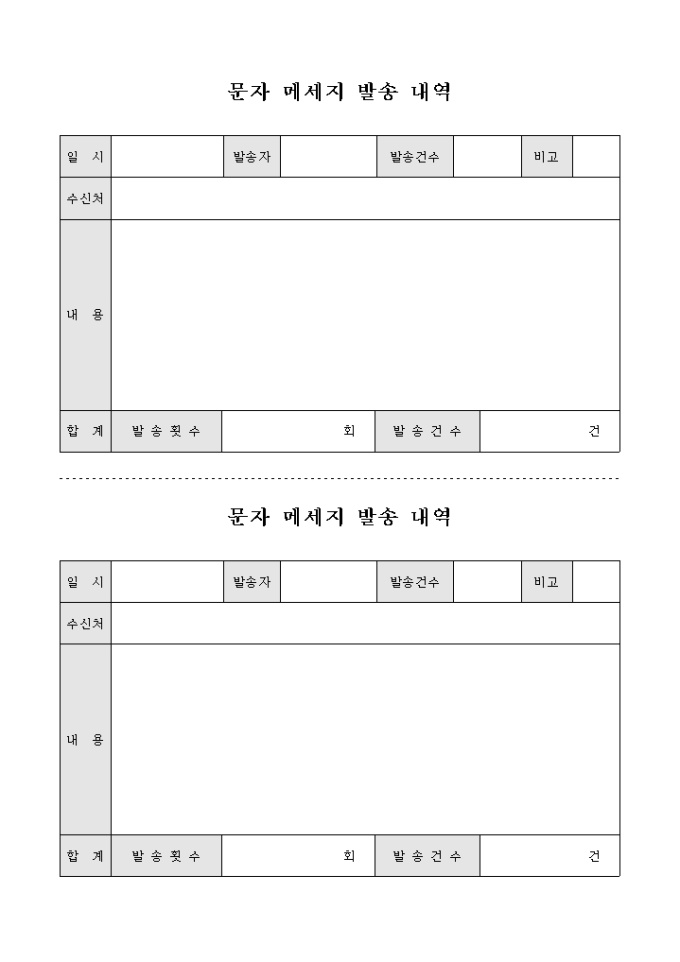 9,000원/월문자 메시지 발송 내역입니다. 수신처, 내용, 발송횟수, 발생건수등으로 구성되어 있습니다. 용지절약문서입니다.