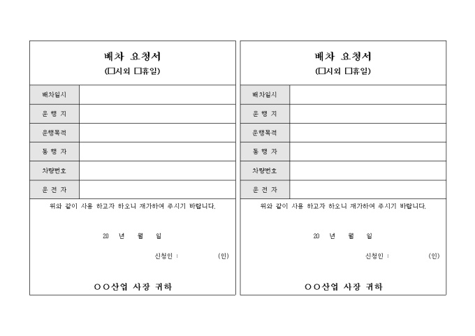 배차 요청서(시외 및 휴일)