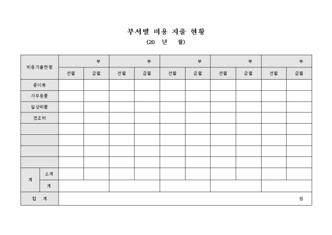 부서별로 사용하는 비용지출현황입니다. 비용지출현황에 따른 월별 지출 현황을 확인할때 사용합니다.