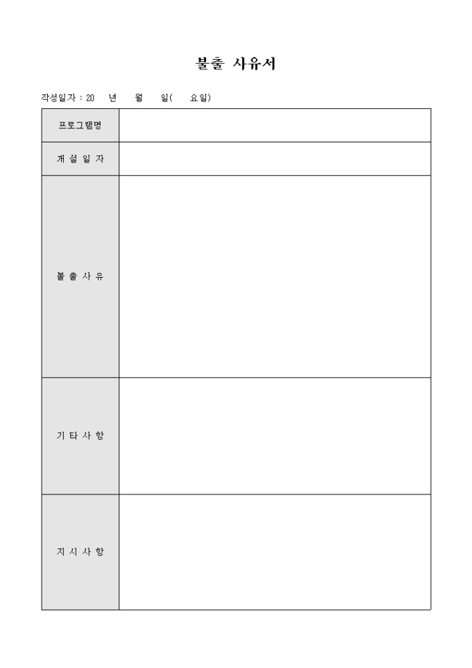 9,000원/월회사에서 사용하는 불출 사유서 입니다. 프로그램등을 불출하고자 할때 불출사유등을 기록하여 제출하는 문서입니다.