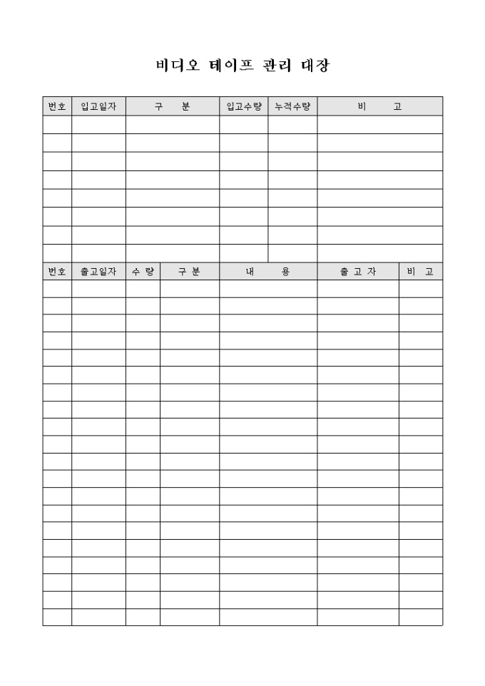 9,000원/월비디오 테이프의 입출고를 관리하기 위해 만들어졌으며 각 항목에 맞는 사항을 기입한 후 작성할 수 있게끔 제작된 서식입니다.