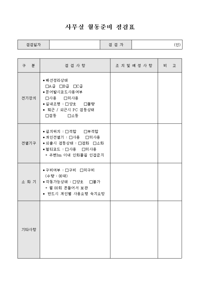 사무실 월동 준비 점검표