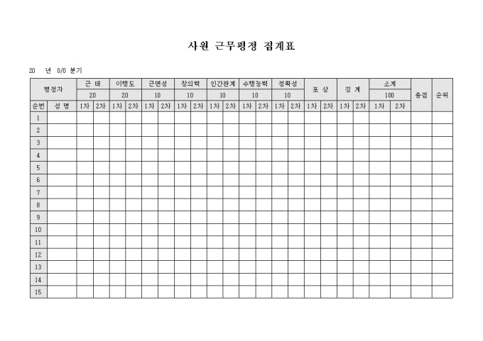 9,000원/월사원근무평정 집계표 입니다. 집계상황등을 확인할수 있습니다.