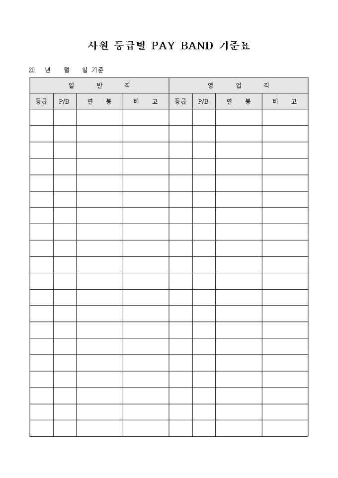 9,000원/월회사에서 사용하는 등급별 연봉기준표 입니다. 일반직과 영업직별 연봉으로 구성되어 있습니다.