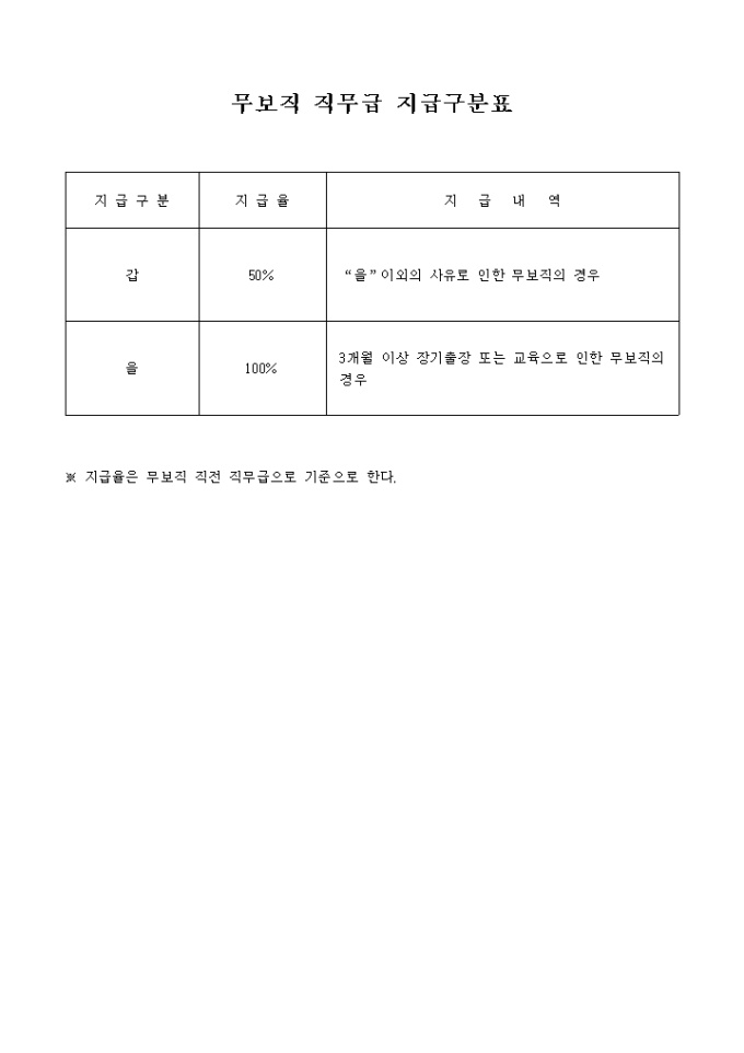 무보직 직무급 지급구분표