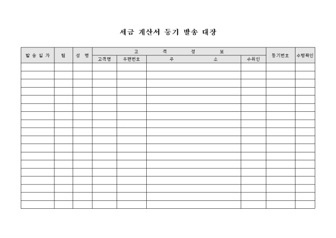 9,000원/월세급계산서등기 발송에 관련된 내용등을 기록할수 있는 발송대장입니다. 발송일자별 고객정보등을 기록할수 있습니다.