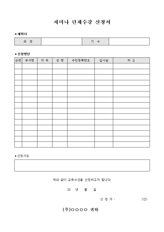 세미나 단체 수강 신청서