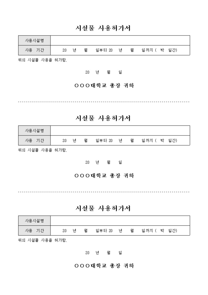 시설 사용 허가서(약식)