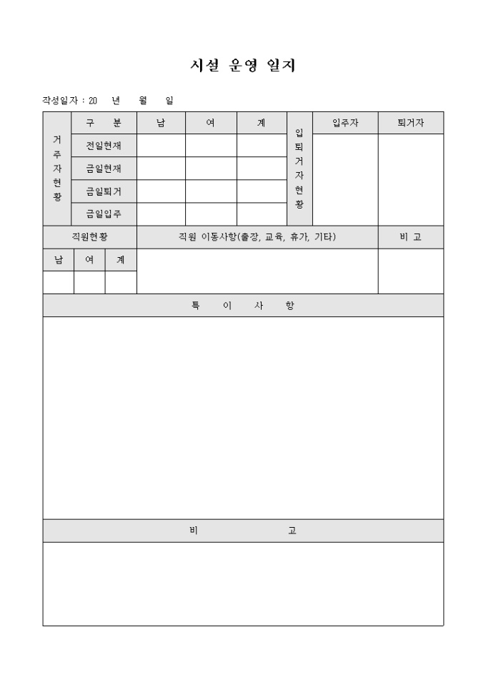 9,000원/월공동체 시설에서 사용하는 시설운영에 관련된 내용과 특이사항들을 기록할때 사용하는 운영일지입니다.