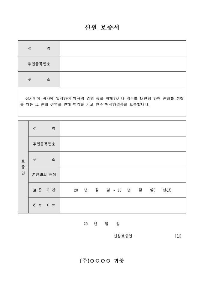 신원 보증서(입사 관련)