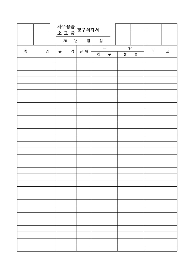 필요 사무용품, 소모품을 청구하실 경우 작성하시는 양식입니다.