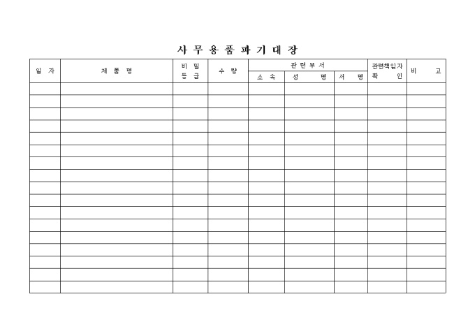 9,000원/월사무용품 파기 대장 양식입니다. 사내 용품(비품)를 파기할 경우 작성하시는 양식입니다.