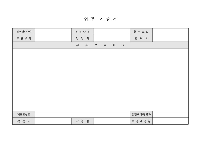 9,000원/월업무내용을 기술할때 사용하는 업무 기술서 입니다. 업무에 따른 세부분석내용등을 기록할수 있습니다.