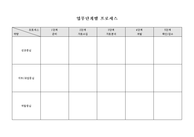9,000원/월업무단계별 프로세스 표입니다. 역량과 단계별 프로세스를 기록할수 있습니다.