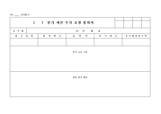 분기별 예산 추가 요청 품의서 양식입니다.