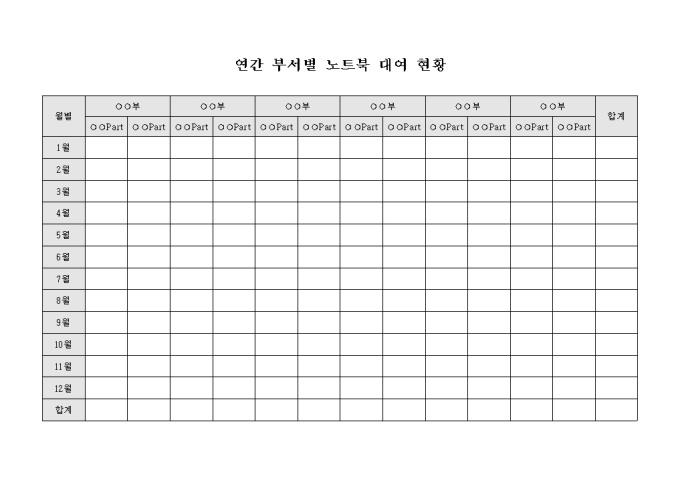 9,000원/월연간 부서별 노트북대여 현황을 월별로 조사하여 기록할수 있습니다.