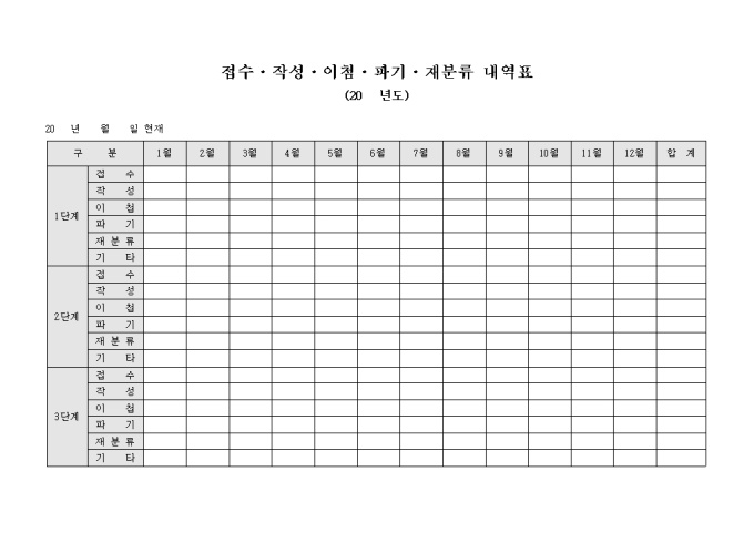 9,000원/월연간 접수, 작성, 이첨, 파기, 재분류 내역을 기록할수 있습니다. 단계별로 구성되어 있습니다.