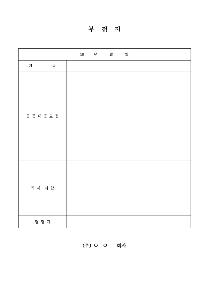 부전지 양식입니다. 공문 내용의 요점을 간략히 정리하여 지시를 내리실 경우 사용하십시요.