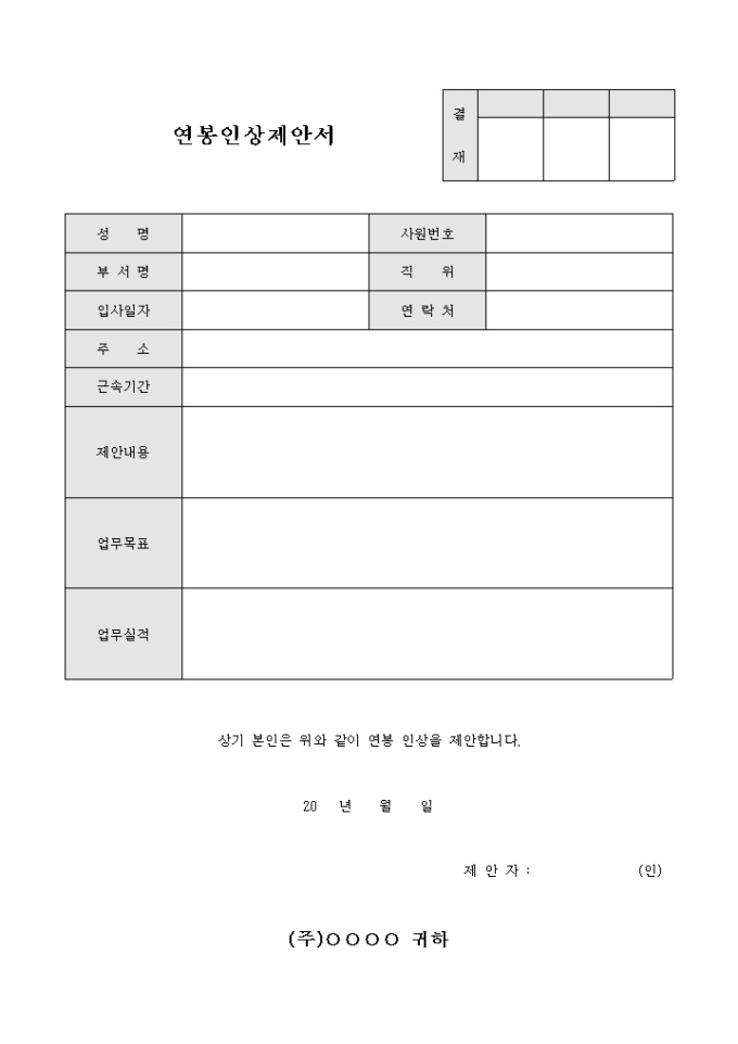 연봉인상 제안시사용됩니다. 업무목표와 업무실적등을 기록하여 제출할수 있습니다.