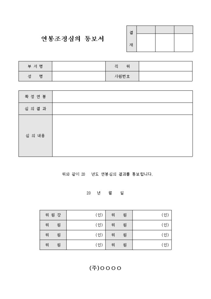 연봉조정 심의결과를 통보할때 사용하는 양식입니다. 심의내용과 심의 결과등을 확인할수 있습니다.