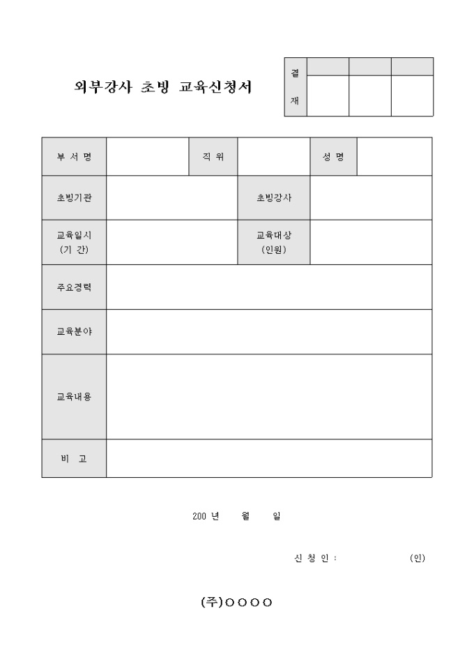 외부 강사 초빙 교육 신청서