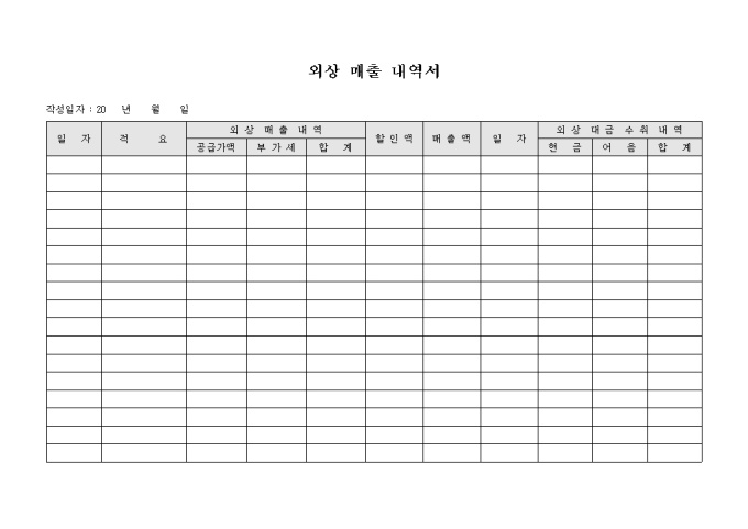 9,000원/월외상매출 내역서 입니다. 외상매출에 관련된 내역들을 확인할수 있습니다.