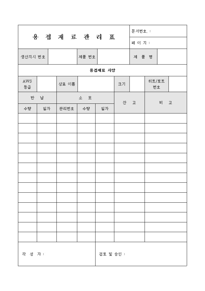 용접 재료 관리표