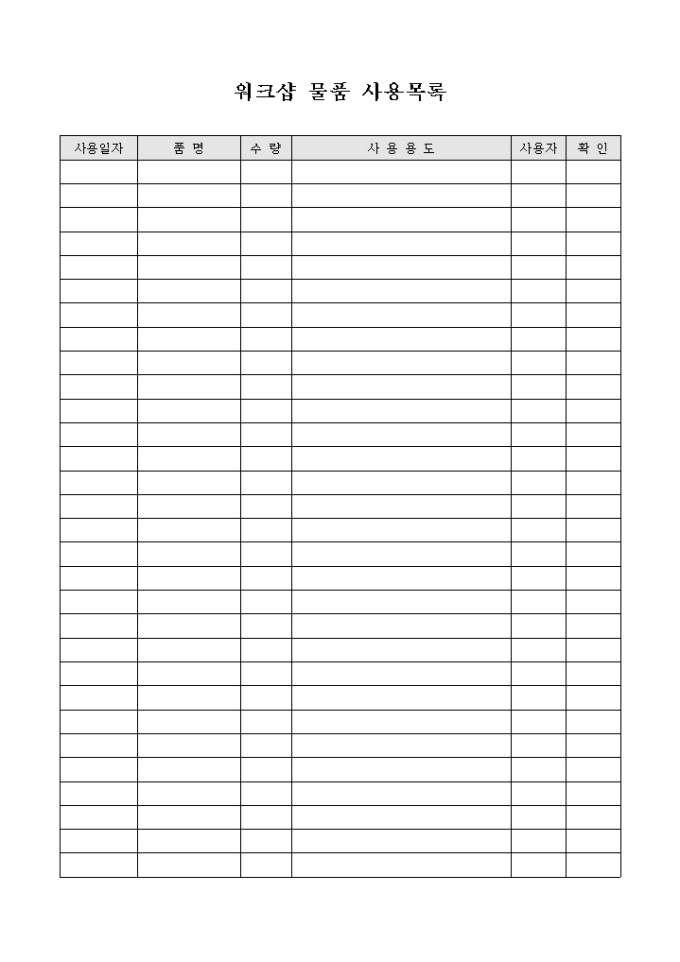 워크샵 물품 사용 목록
