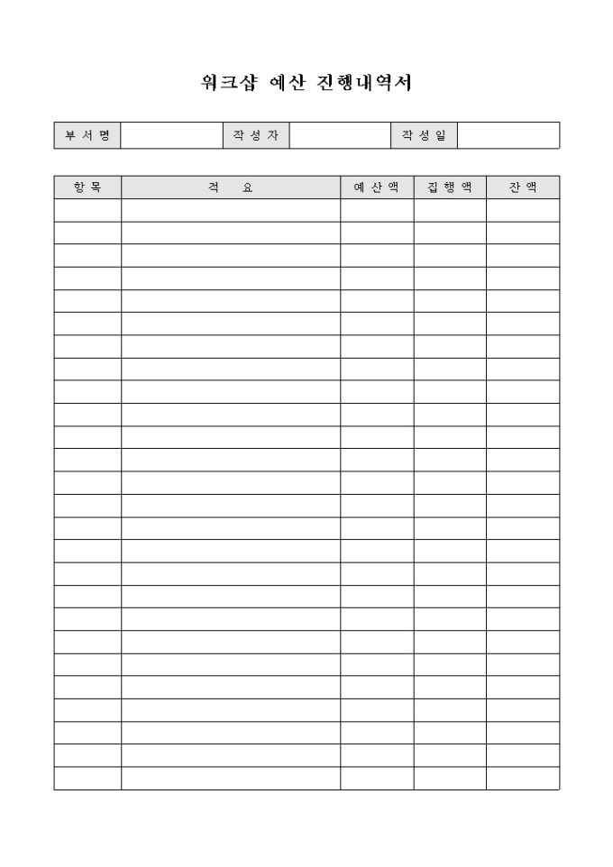 워크샵 예산 진행 내역서