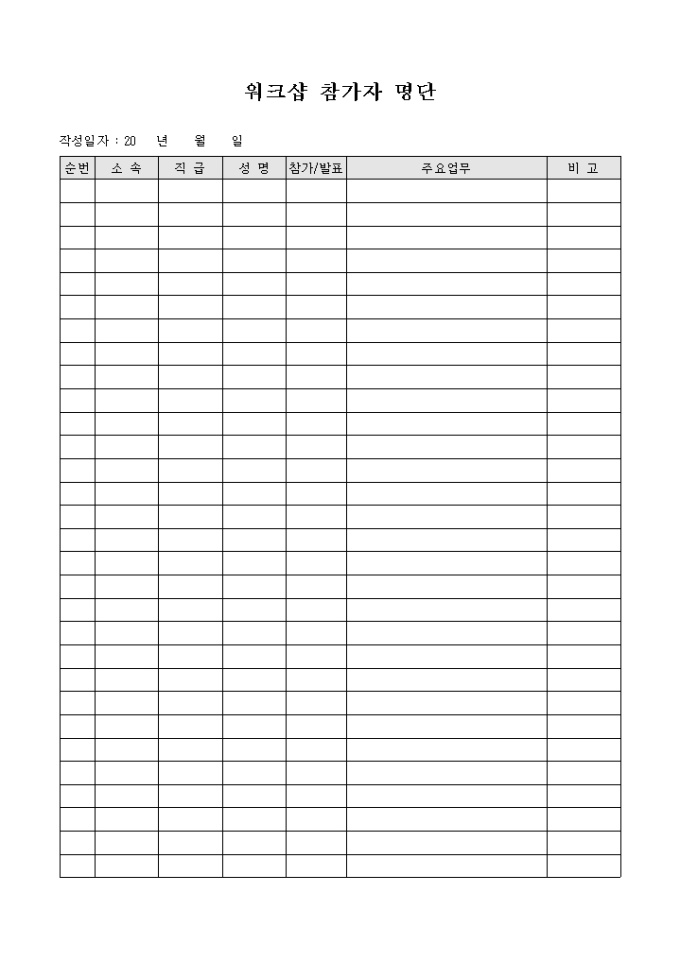 9,000원/월워크샵 참가를 희망하는 인원의 명단을 기록할수 있습니다. 워크샵의 참가자와 발표자등을 구분할수 있습니다.