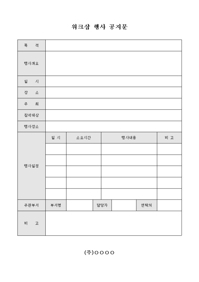 9,000원/월워크샵행사의 행사를 공지할때 사용하는 문서입니다. 행사일정별 소요시간과 행사일정등을 확인할수 있습니다.