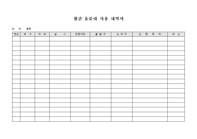9,000원/월월간 사용한 유류에 대한 사용내역을 기록할때 사용됩니다. 일시와 운행목적별 유류 사용현황등을 기록할수 있습니다.