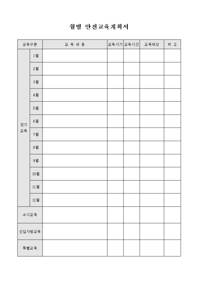 월별 안전 교육 계획서