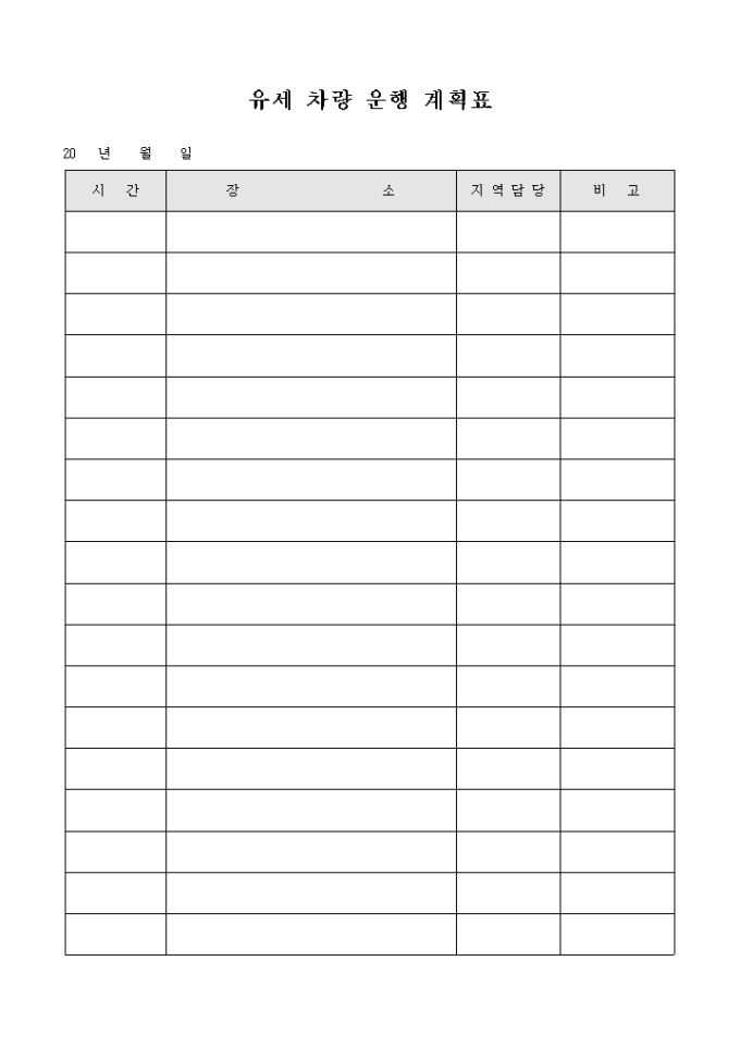 9,000원/월선거시 사용하는 유세차량의 운행계획표 입니다. 시간별 차량 운행 장소와 지역담당자등을 기록할수 있습니다.