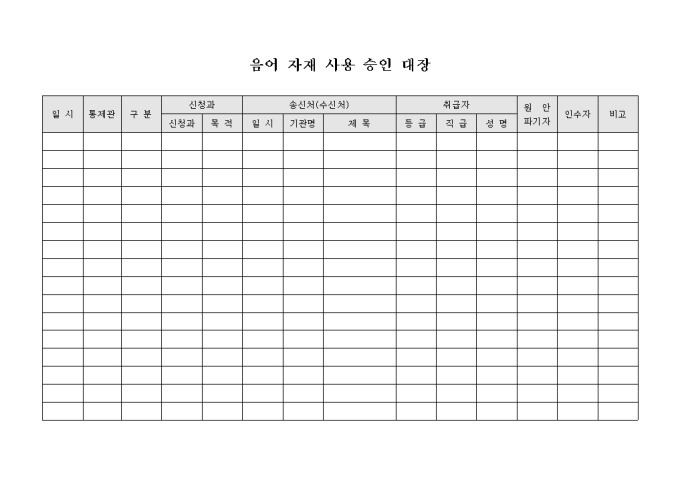음어 자재 사용 승인 대장