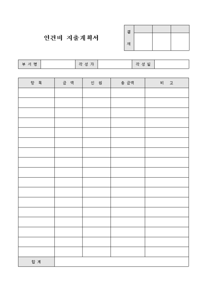 9,000원/월인건비 지출계획에 따른 항목별 금액과 인워등의 계획을 세울때 사용하는 계획서 입니다.