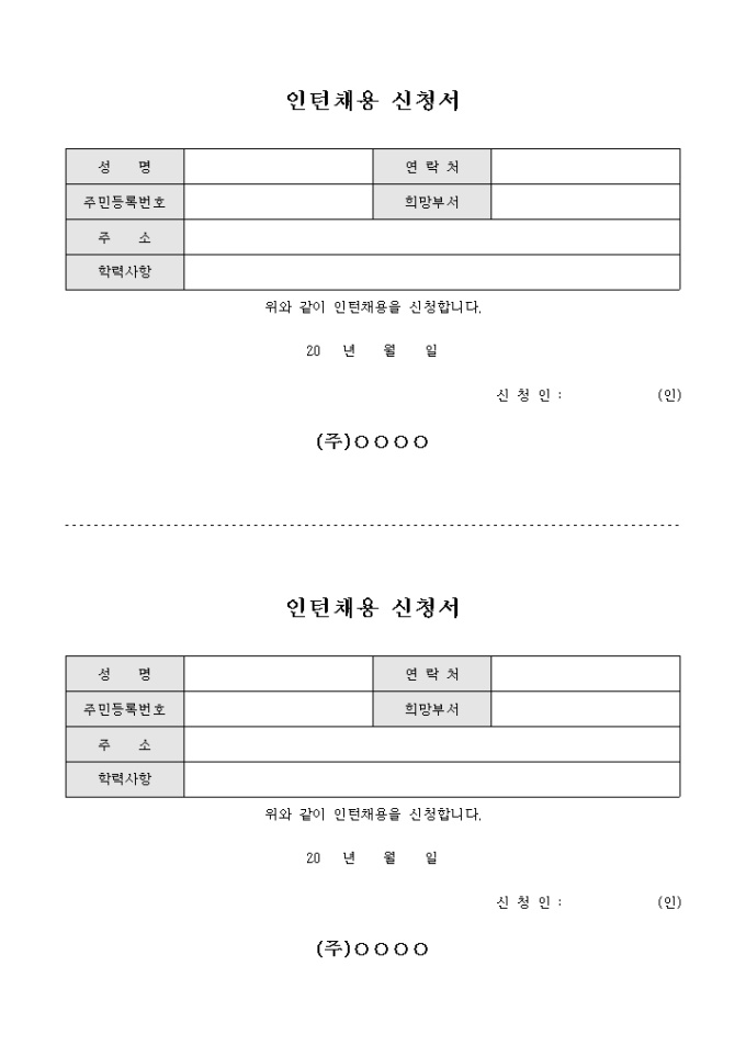 9,000원/월희망하는 업체에 인턴신청을 하기위해 사용하는 인턴채용 신청서 입니다.