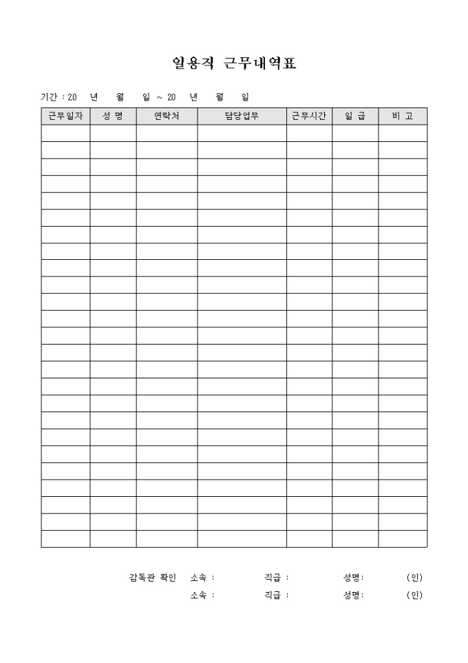 일용직 근무자의 담당업무등을 기록할때 사용합니다. 근무시간과 일급등을 기록할수 있습니다.