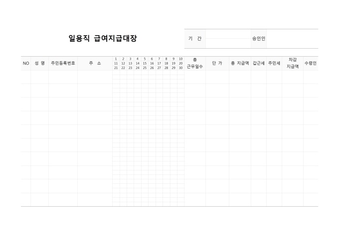 일용직 급여 지급 대장