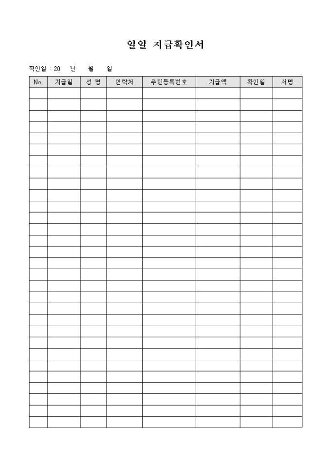 9,000원/월일일 지급 확인서 입니다. 지급일과 연락처 지급액등을 기록할수 있습니다.