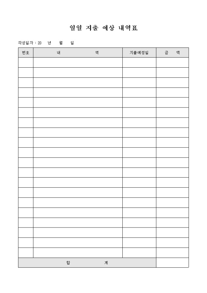 9,000원/월일일 지출예상 내역표 입니다. 지출내역과 지출예정일별 금액등을 확인할수 있습니다.