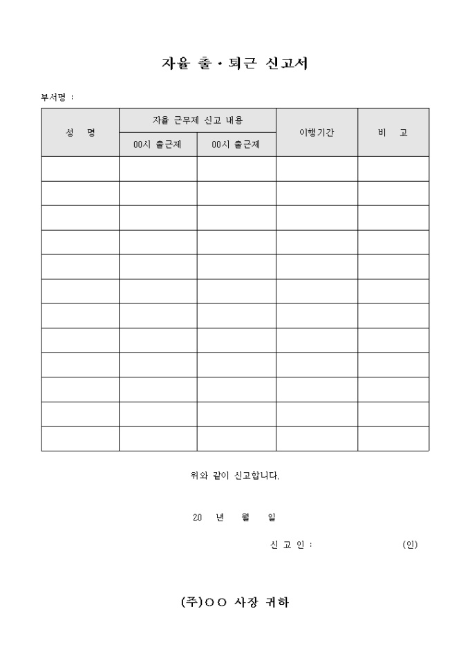 자율 출·퇴근 신고서