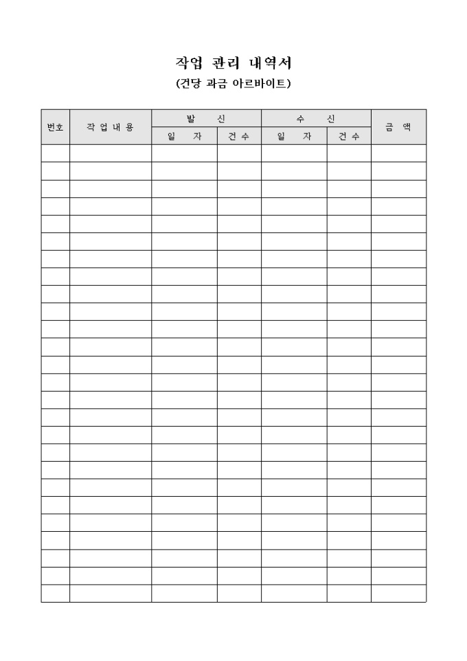 9,000원/월건단 과금 아르바이트시 사용하는 작업 관리 내역서 입니다. 작업내용별 발신건수와 수신건수에 대한 금액등을 기록할수 있습니다.