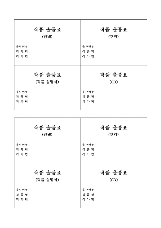 판넬, 모형, CD, 작품 설명서에 사용되는 작품 출품표 입니다. 작품 출품시 사용합니다.