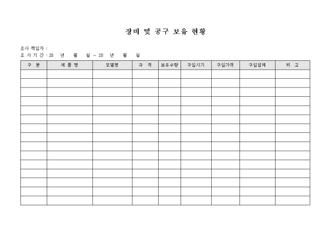 9,000원/월장비 및 공구 보유 현황입니다. 장비의 보유현황과 구입시기등을 기록할수 있습니다.