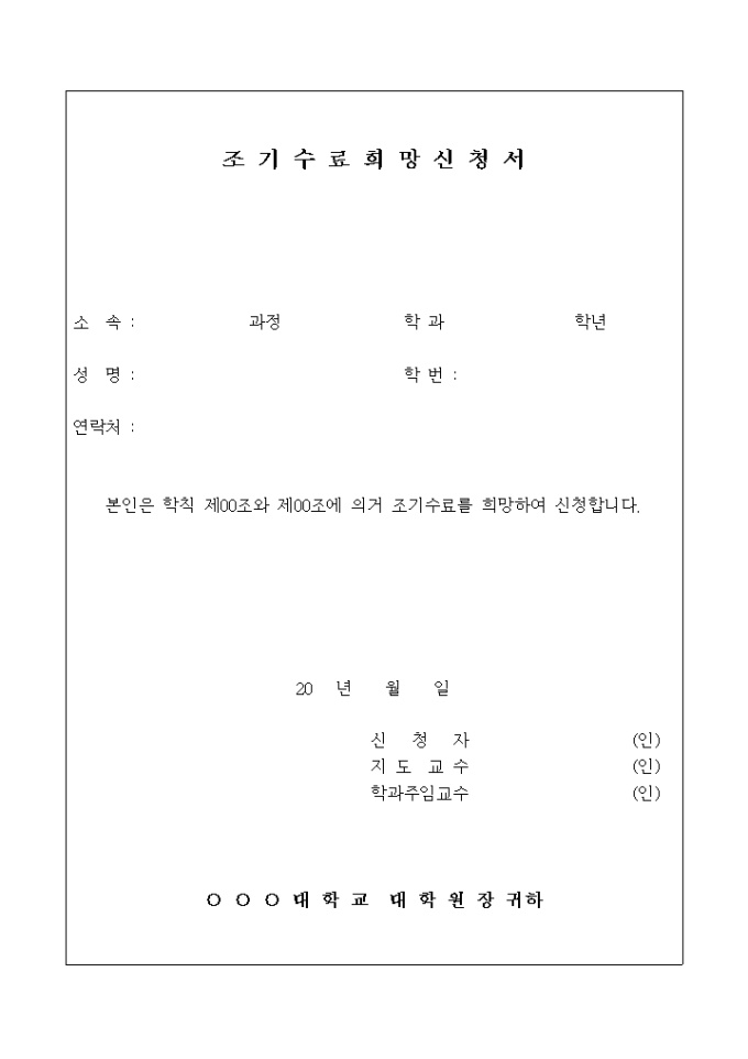 조기 수료 희망 신청서(대학원)