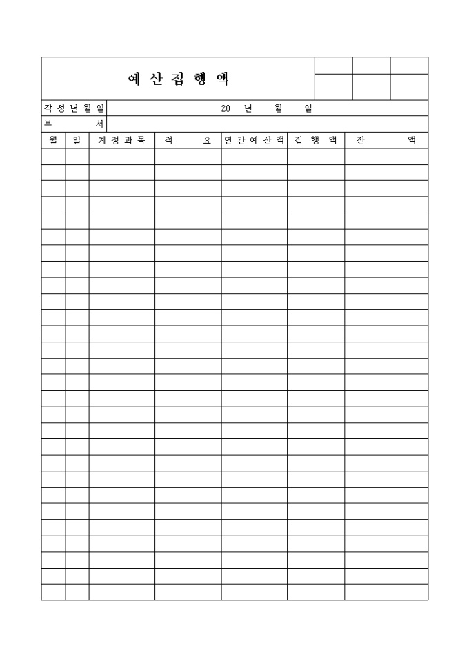 9,000원/월예산집행액 양식입니다. 일별 예산의 집행을 상세히 기록 관리 하실수 있는 양식입니다.